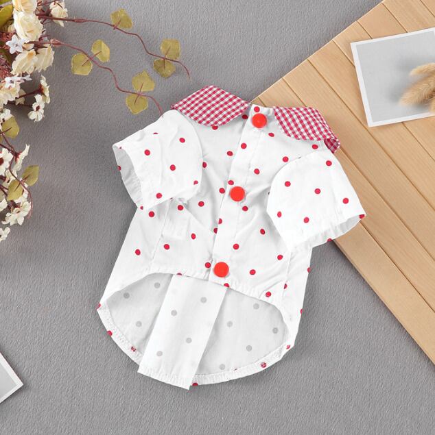 ドッグウェア ギンガムチェック襟 ドット柄ワンピース レッド 犬服