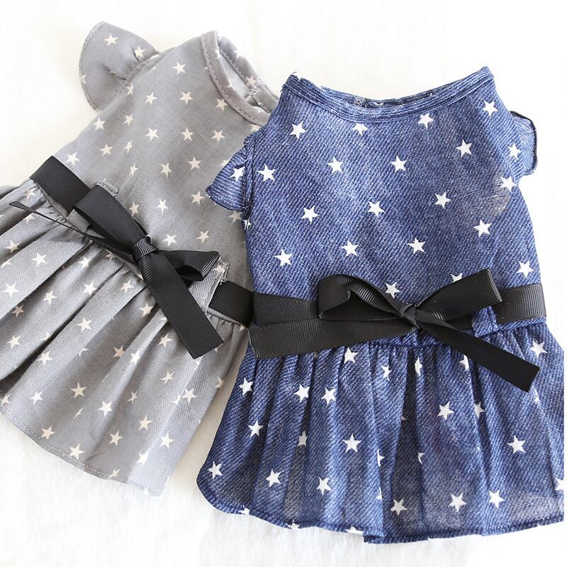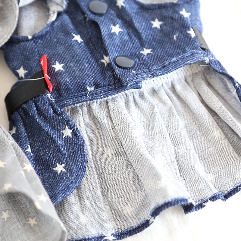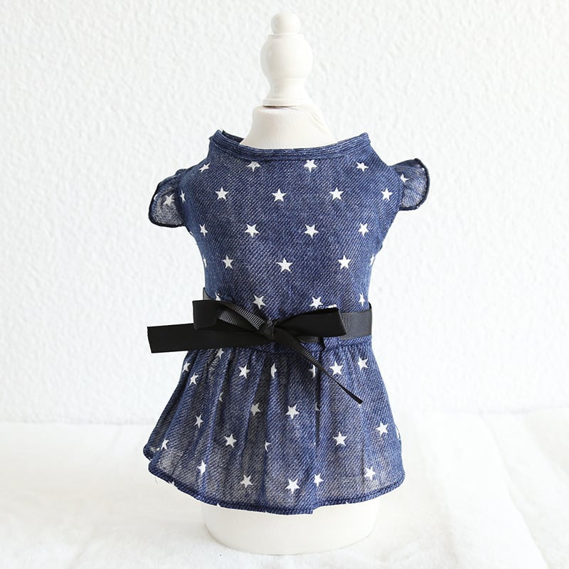 【XS即納】 ドッグウェア スター柄リボン付ワンピース ブルー 犬服