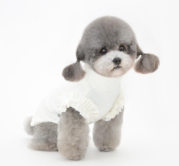 ドッグウェア 袖フリルハイネックリブニット ホワイト 犬服